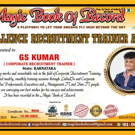 I’ve also been honored with the Karnataka Bhushan Award and recognized among the Top 25 Inspiring Coaches in India, which motivates me to continue serving job seekers with clarity and honesty.